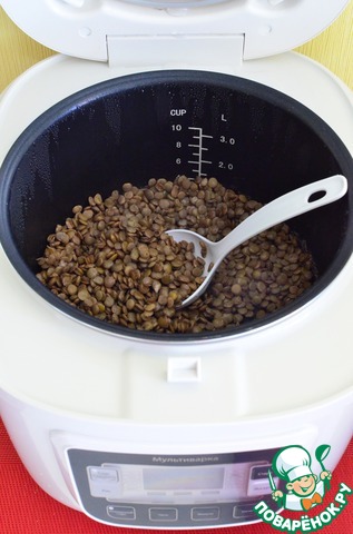 Чечевицу отварить до готовности. Я делаю это в мультиварке в режиме Крупа 30 минут.
