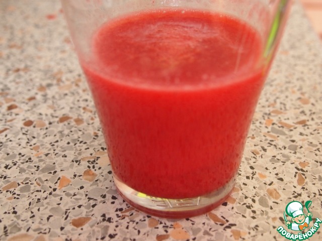 Далее в воду с желатином влить свежевыжатый сок красной смородины, хорошо размешать.