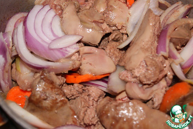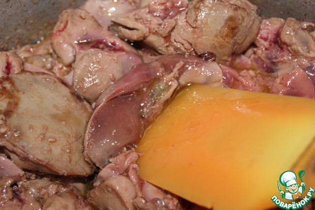 В глубоком сотейнике быстро обжарить печень в хорошо нагретом растительном масле.