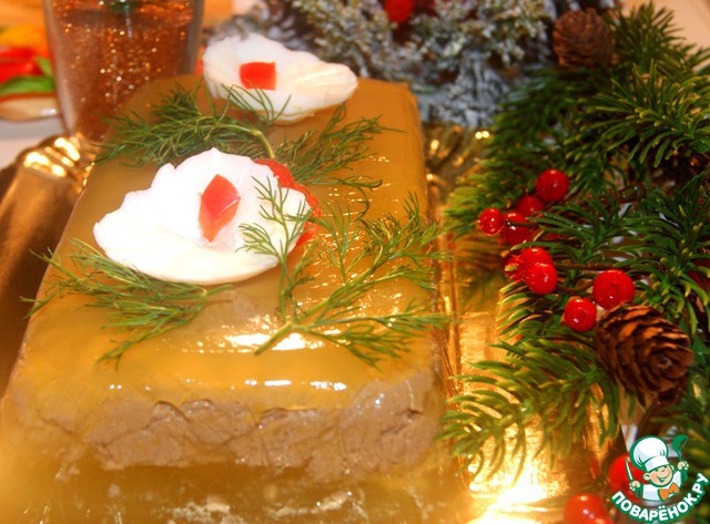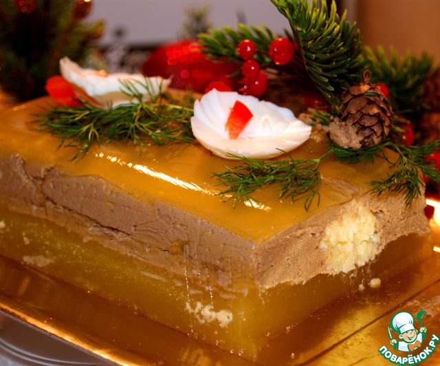 Паштет с сырно-миндальной прослойкой, покрытый желе