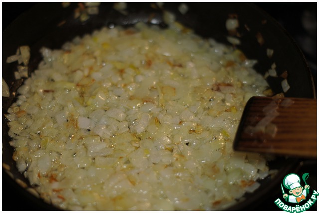 Обжарьте мелко нарезанный лук в небольшом количестве масла