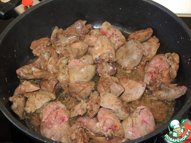 Куриную печень промываем и хорошо очищаем от пленок. Обжариваем на растительном масле на среднем огне 10-15 минут.