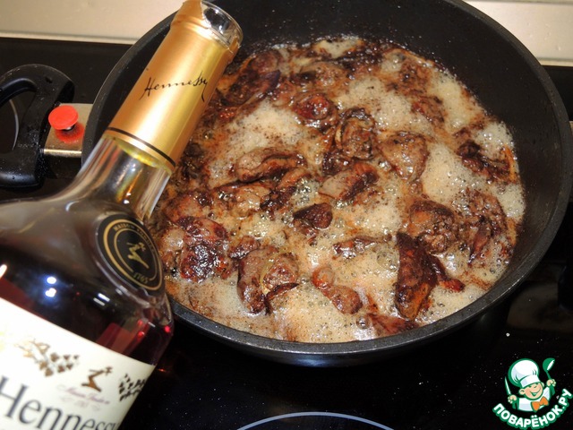 | А аромат этому паштету придает рюмочка коньяка... Паштет получается очень плотным и насыщенным, и я намеренно не превращала его в однородную пюреобразную массу, в паштете встречаются кусочки печени. С бородинским хлебом это очень вкусно! Приглашаю! |