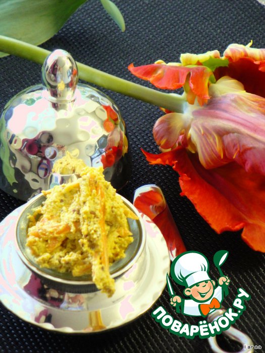Ее можно намазать на кусочек хлеба или на огучик, также завернуть в лист салата или….