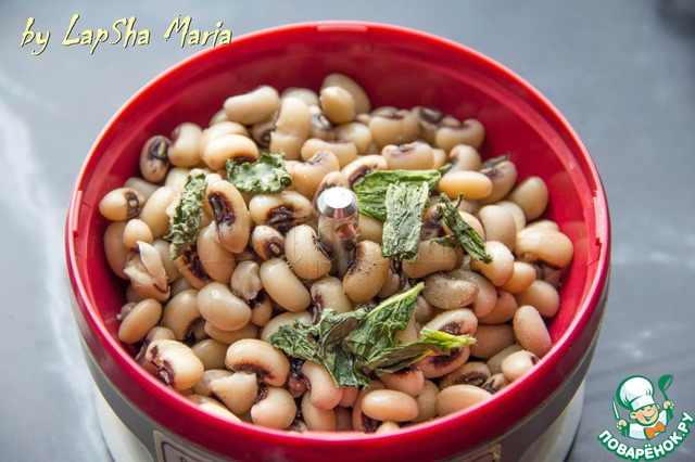 Фасоль попробовать, при необходимости еще немного посолить, поперчить и добавить листики мяты. На одну горсть примерно по 2 листочка. Можно и больше, если любите свежий вкус мяты.