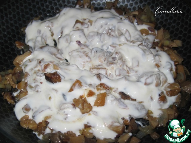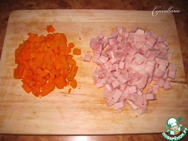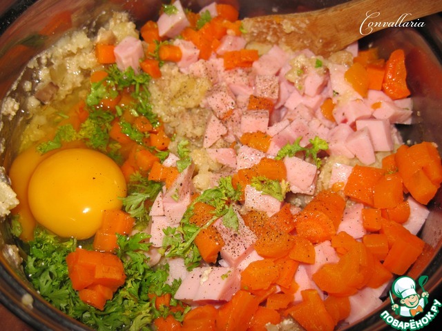Морковь, ветчину, грибы с луком переложить к картофельному пюре.