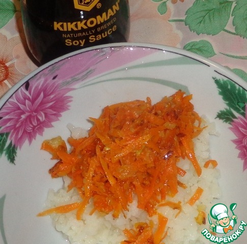 Морковь натереть на крупной терке, репчатый лук мелко нарезать. Потушить до готовности лук и морковь в воде, а затем 2-3 минуты обжарить овощи на растительном масле.