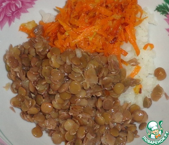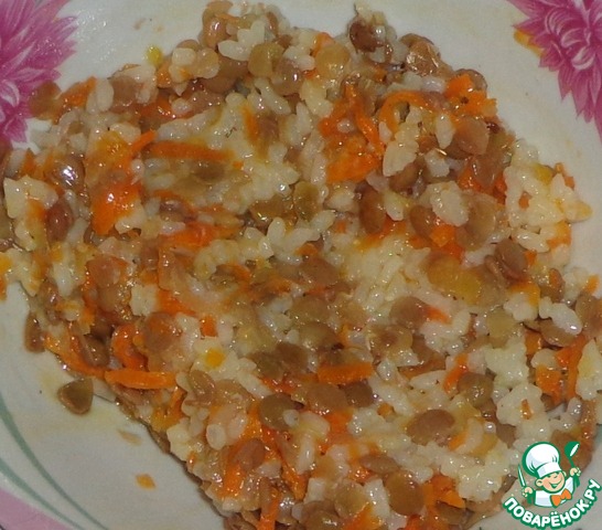 Итак, понадобится предварительно сваренная до готовности чечевица и рис.
