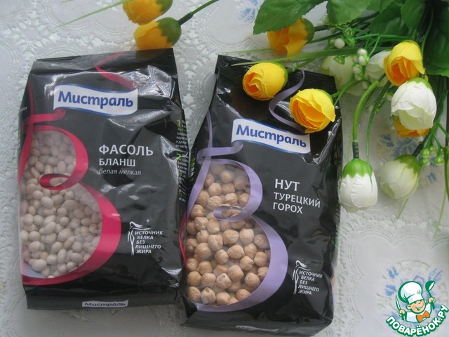 Затем залить свежей водой сварить до готовности, посолив в конце (фасоль варится примерно за час с небольшим, нут около 1,5 часов). Я замачиваю и варю отдельно.