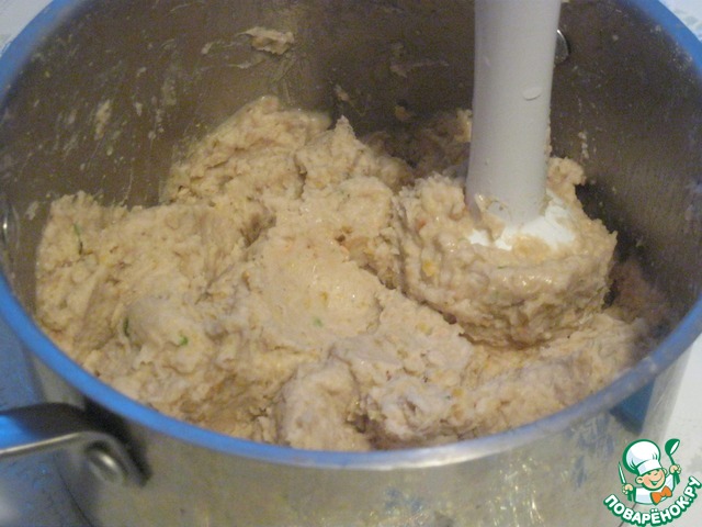Перемолоть блендером, подливая воду, в которой варились нут с фасолью.