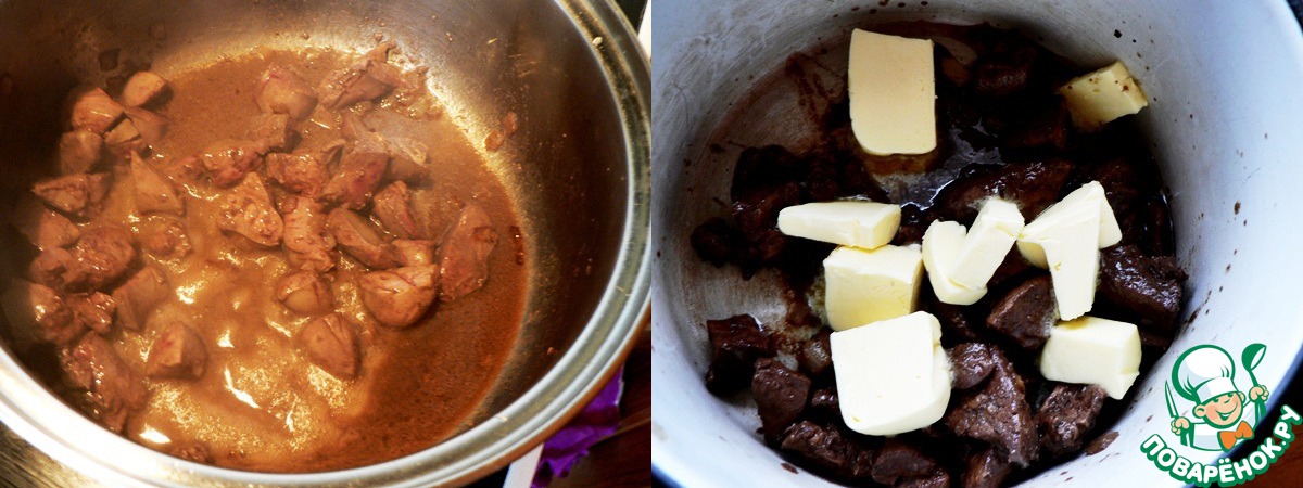 Влить в печень вино, всё перемешать, оставить под крышкой до полной готовности печени.