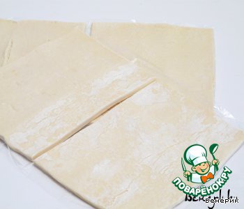 Края квадратов защипнуть, чтобы получились коробочки (как вас учили в школе), и положить на противень, застеленный бумагой для запекания.
