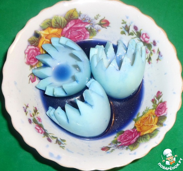 Вырезать с помощью ножа зубчики. То же самое проделать с остальными варёными яйцами.
