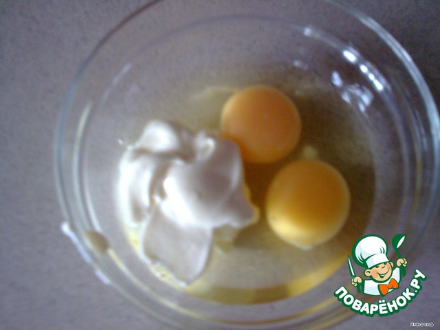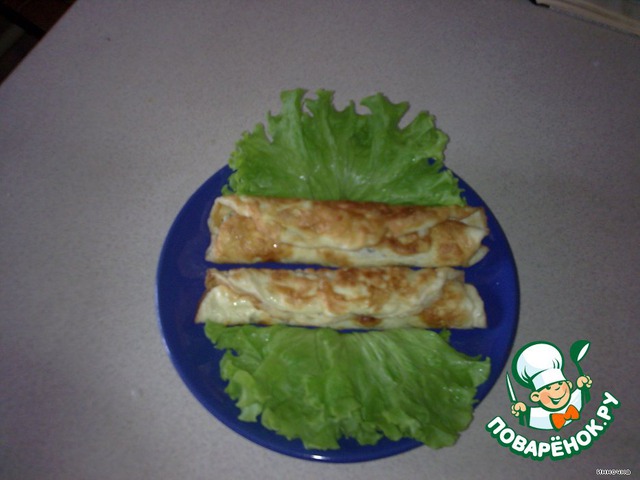 2яйца и 2 ст. л. майонеза хорошо взбить и поджарить с 2 сторон на сковородке 2 блинчика