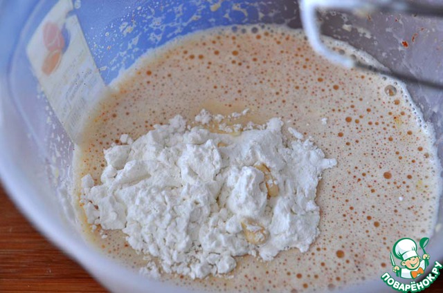 Добавить крахмал, взбить. Я использовала кукурузный, но можно и картофельный.