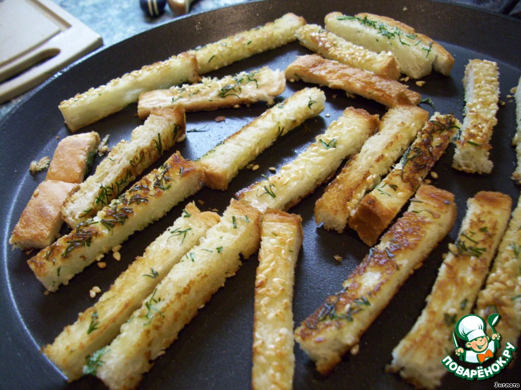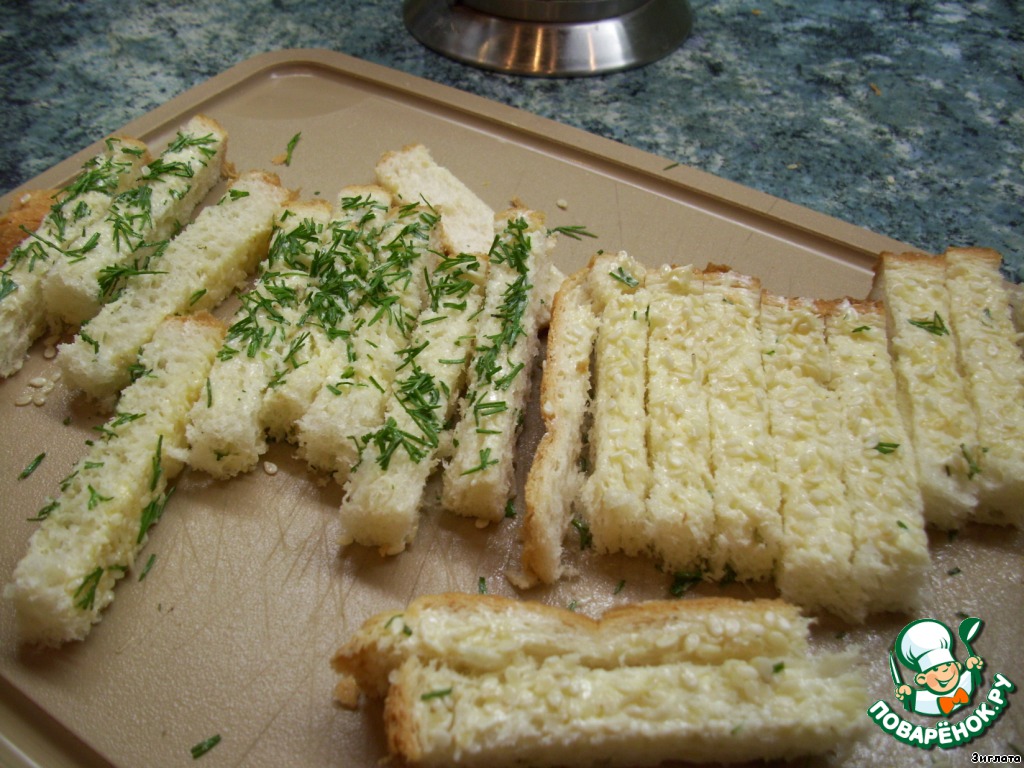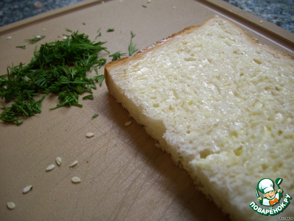 мелко нарезаем укроп и «пачкаем» маслом вторую сторону хлеба