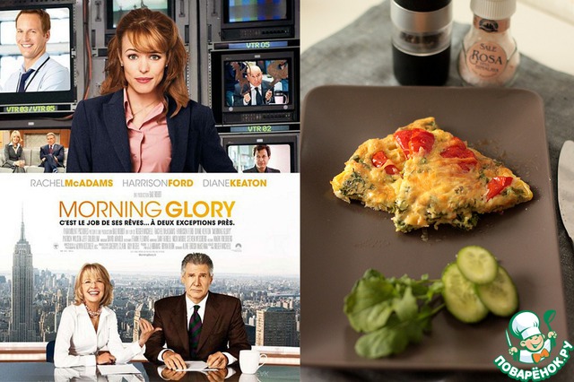 Друзья, впереди выходные, и может быть, кому-то пригодится рецепт прекрасной фриттаты на предстоящей weekend. Омлет, скажете вы, как не интересно. Да, омлет, но не простой, а с овощами и запеченный в духовке, но главная изюминка этого блюда, его готовит несравненный, брутальный, харизматичный, да что там, просто классный Харрисон Форд в веселой комедии "Доброе утро". Если Вы пропустили это кино, то позвольте пару слов о нем. Молодая сотрудница устраивается на работу в третьесортное утреннее шоу, которое она пытается реанимировать. Для этого она приглашает на роль со ведущего известного ранее политического журналиста Майка Помероя, которого играет Харрисон Форд. В паре с бывшей королевой красоты Даян Китон, у которой несносный характер и высокие амбиции, Померой должен рассказывать разные пустые новости. Между героями разгораются нешуточные конфликты и баталии, а между тем, утреннее шоу начинает набирать обороты. Харрисон Форд дважды в фильме готовит фриттату, и, оба раза, это его персональный способ принести извинения. Фильм легкий, веселый, очень домашний. Если у Вас будет лишний час, устройте семейный кинопросмотр, не забыв приготовить на завтрак этот чудный итальянский рецепт.