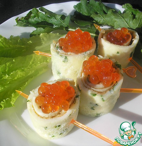 Омлет по-новому или рулетики с красной икрой