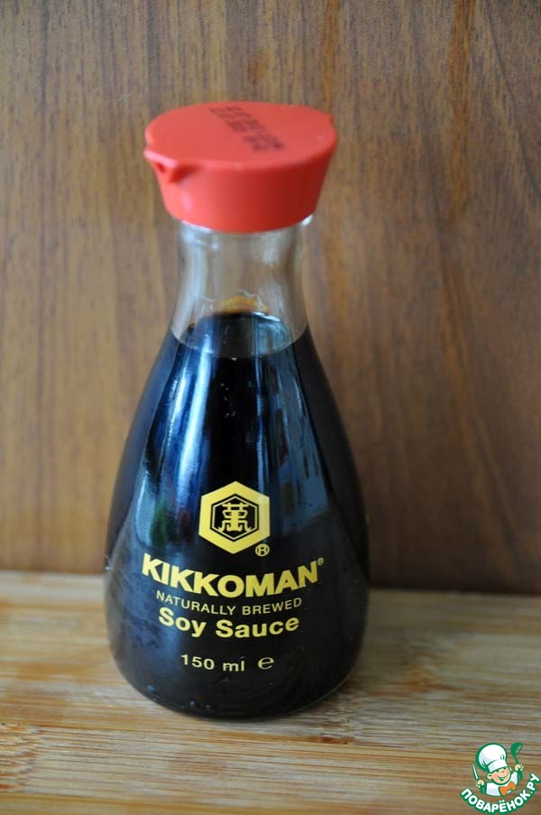 Для этого смешиваем 2 яйца, воду, сахар (1/2 ст. ложки), соевый соус от "Киккоман" (1 ст. ложка), всё взбиваем миксером.