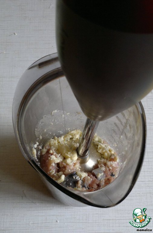 В блендере измельчить филе скумбрии и желтки.