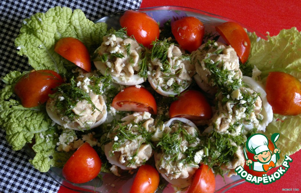 Яйца, фаршированные паштетом из скумбрии