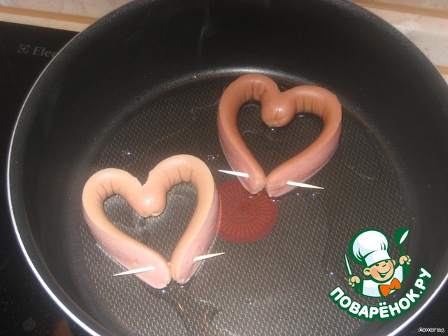 Жарить до готовности. Солить не обязательно, так как сосиски соленые.
