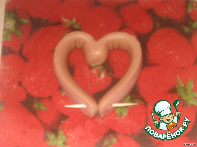 Отваренные сосиски разрезать пополам по длине, но не до конца.