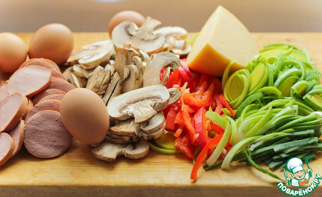 | Фриттата— итальянский омлет, который готовят с начинками из сыра, овощей, колбасы или мяса. Фритта -нечто среднее между омлетом с начинкой и запеканкой. Традиционная крестьянская фриттата содержит лук-порей и сыр. Предлагаю мою интерпритацию этого блюда. Прекрасное весенне-летнее блюдо. |