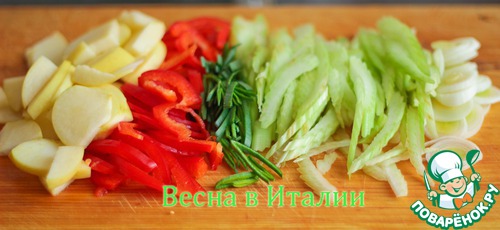 2 стебля сельдерея тонко нарезать наискосок полосочками,