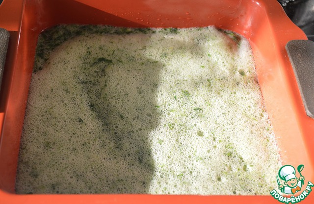 Налейте в кастрюлю воды и поставьте на огонь. Когда вода закипит, опустите туда зелень на 1 минуту. Откиньте на дуршлаг и отожмите.