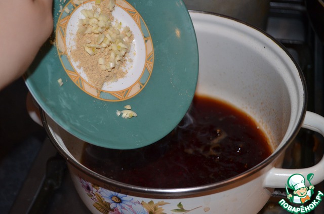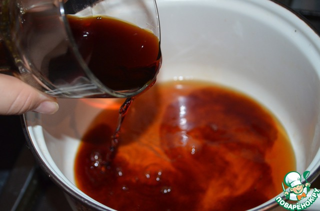 3. Добавляем соевый соус к заверенному черному чаю и доводим до кипения.