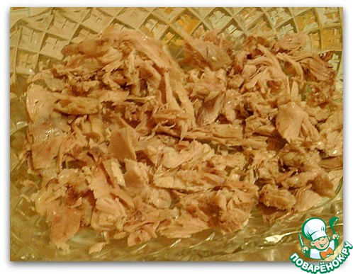 Нам понадобится любое, в принципе, отварное куриное мясо...