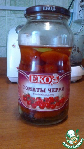 Помидоры ( можно любые соленные, мариннованые, свежие) у меня были маринованные черри. очистим от кожицы и добавим в фарш + 2 яйца. Хорошо перемешиваем. Соль, перец, чеснок. по вкусу!