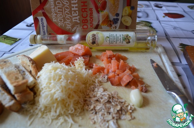 Я сегодня хочу угостить Вас кашкой с красной рыбой и овсяными хлопьями.