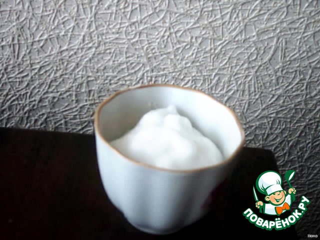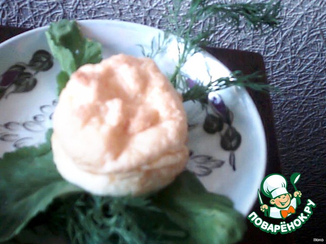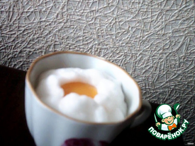 Яйцо разбить и отделить белок от желтка. Белок взбить в крепкую пену, чуть подсолив. Смазать Вашу формочку маслом, выложить пену и сверху положить желток. Форму поставить в горячий шкаф и запекать 3 -4 минуты до корочки.