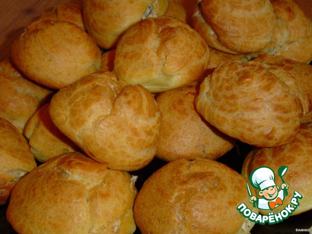 Затем лист смазать маргарином и выложить тесто,или ложкой,или кондитерским шприцем.Выпекать 15-20 мин на среднем огне.Когда булочки пекутся,духовку не открывать!!!