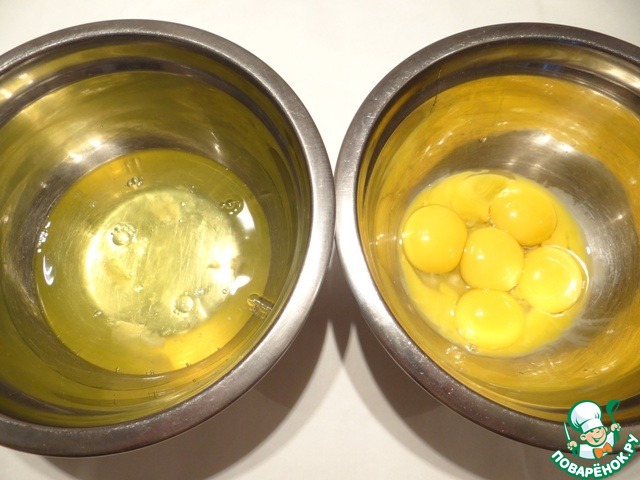 Сначала готовлю тесто. Белки отделяю от желтков.