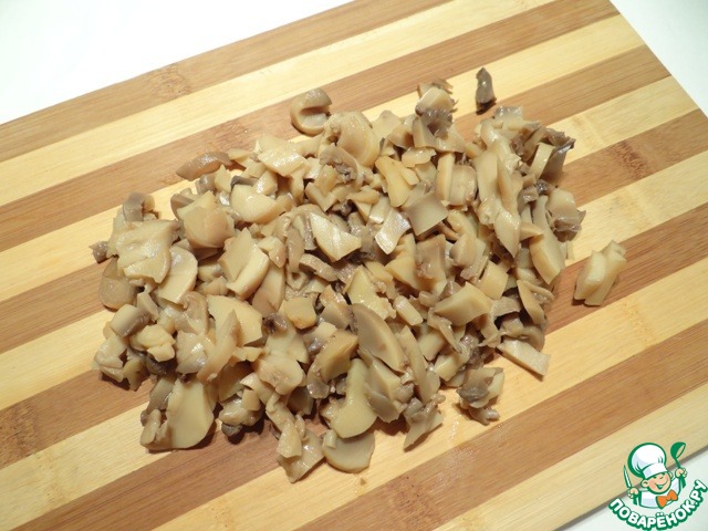 Консервированные шампиньоны измельчаю с помощью ножа.