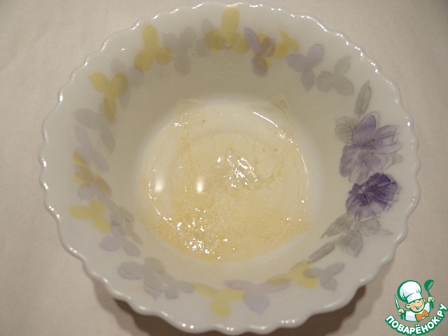 Для приготовления прослойки я использую листовой желатин - в теплой кипяченой воде оставляю листовой желатин минут на 10, перемешиваю до растворения, процеживаю массу. Если Вы используете порошковый желатин - замочите его в теплой кипяченой воде для набухания и нагрейте на небольшом огне до растворения желатина (не доводите до кипячения!), процедите массу.