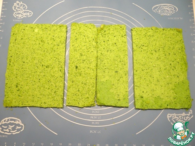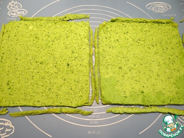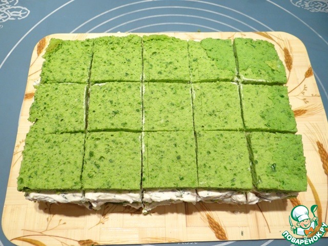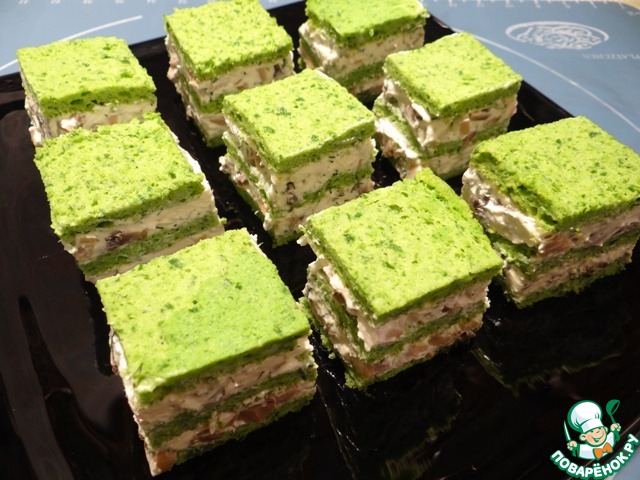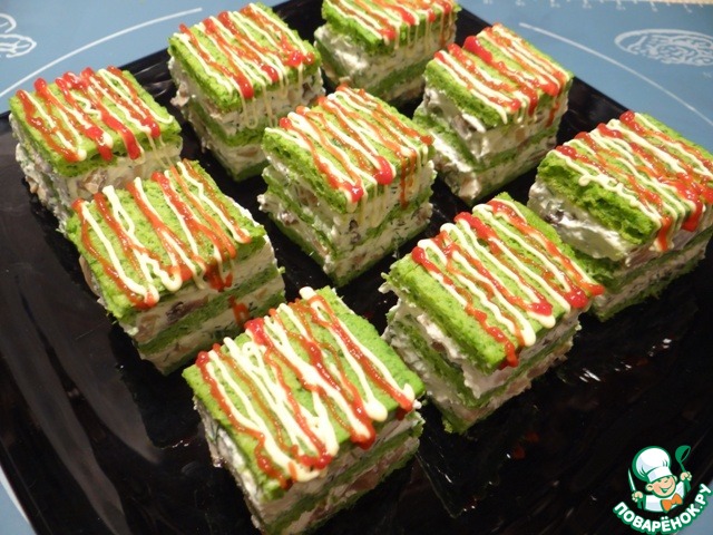 Закуска "Шпинатные кубики" с сырно-грибной прослойкой