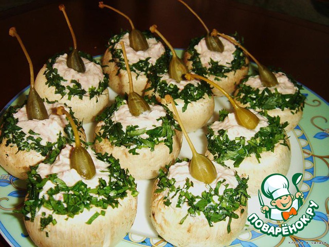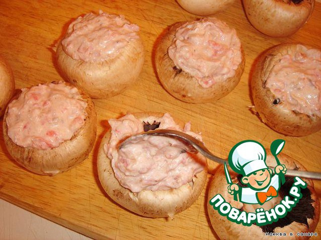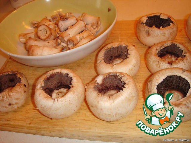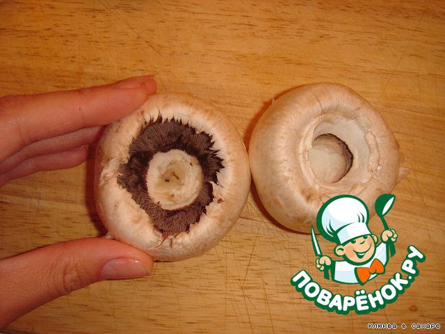 Примечание: у каждого грибочка желательно срезать внутренний ободок, делая "чашечку" поглубже, чтобы были видны грибные пластиночки (на фото слева).