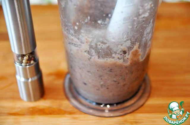 Берём остывшую фасоль, её получается около 250 граммов, добавляем соль, свежемолотую смесь перцев и измельчаем с помощью блендера в пюре.