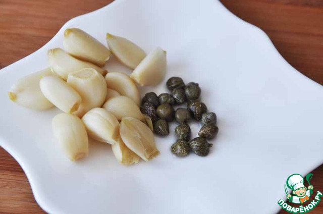 Очищенный чеснок, каперсы, вяленые томаты с маслом добавляем к фасолевому пюре и измельчаем всё блендером.