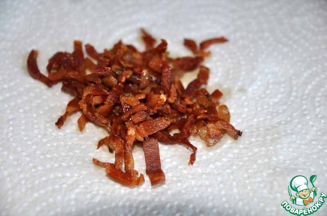 Обжаренный бекон выкладываем на бумажное полотенце.
