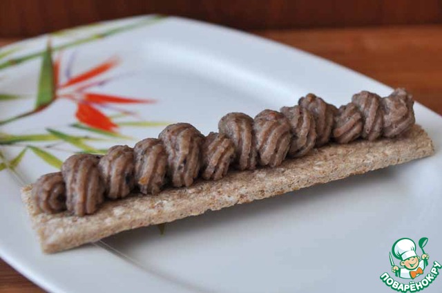 Выложить фасолевую пасту в кондитерский мешок и фигурно выдавить её на хлебцы.