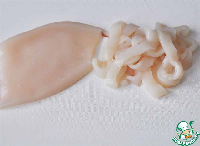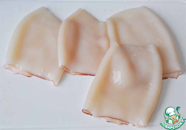 Кальмар чистим. Обсушиваем бумажным полотенцем.