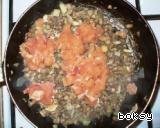 Мелко нарезать куриное филе и добавит его к луку и грибам, обжаривать 10 мин.