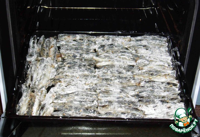 Мойву выложить на смазанный противень и выпекать в разогретой духовке до образования золотистой корочки.