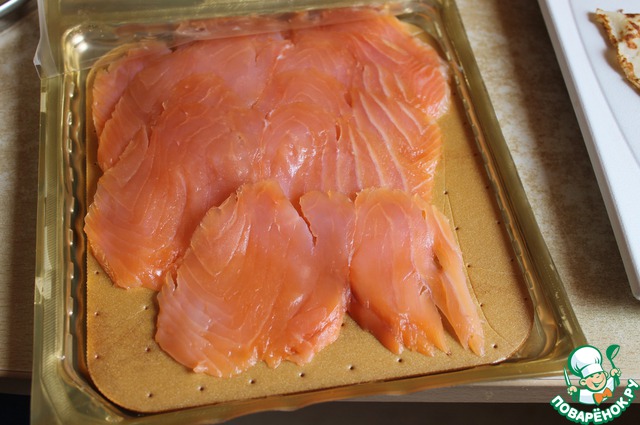 Нам нужна семга тонко нарезаная, я брала такую в упаковке..