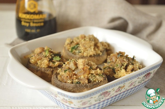 Достаем нашу форму с шляпками из духовки и аккуратно фаршируем из начинкой. Снова отправляем в духовку на 10 минут.